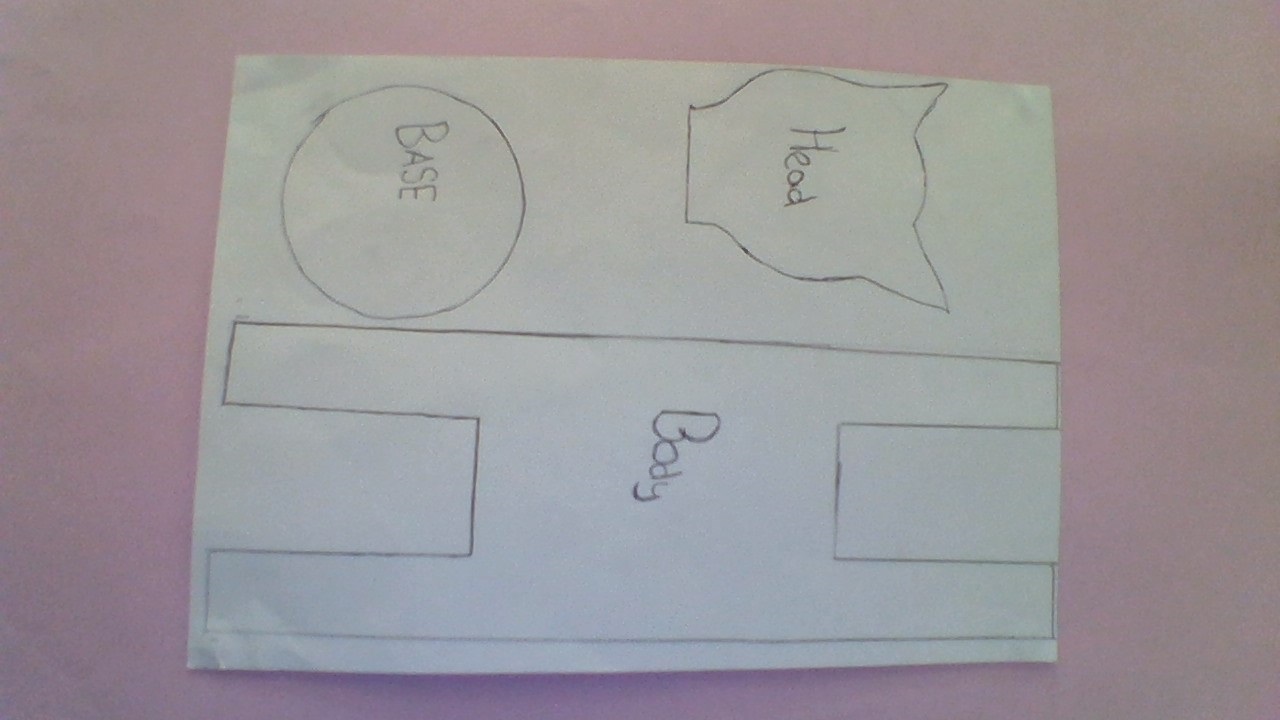 1. Trace off and transfer the head and base templates onto a piece of cardboard. Trace the body template off onto a piece of corrugated card. Cut out all of the pieces.