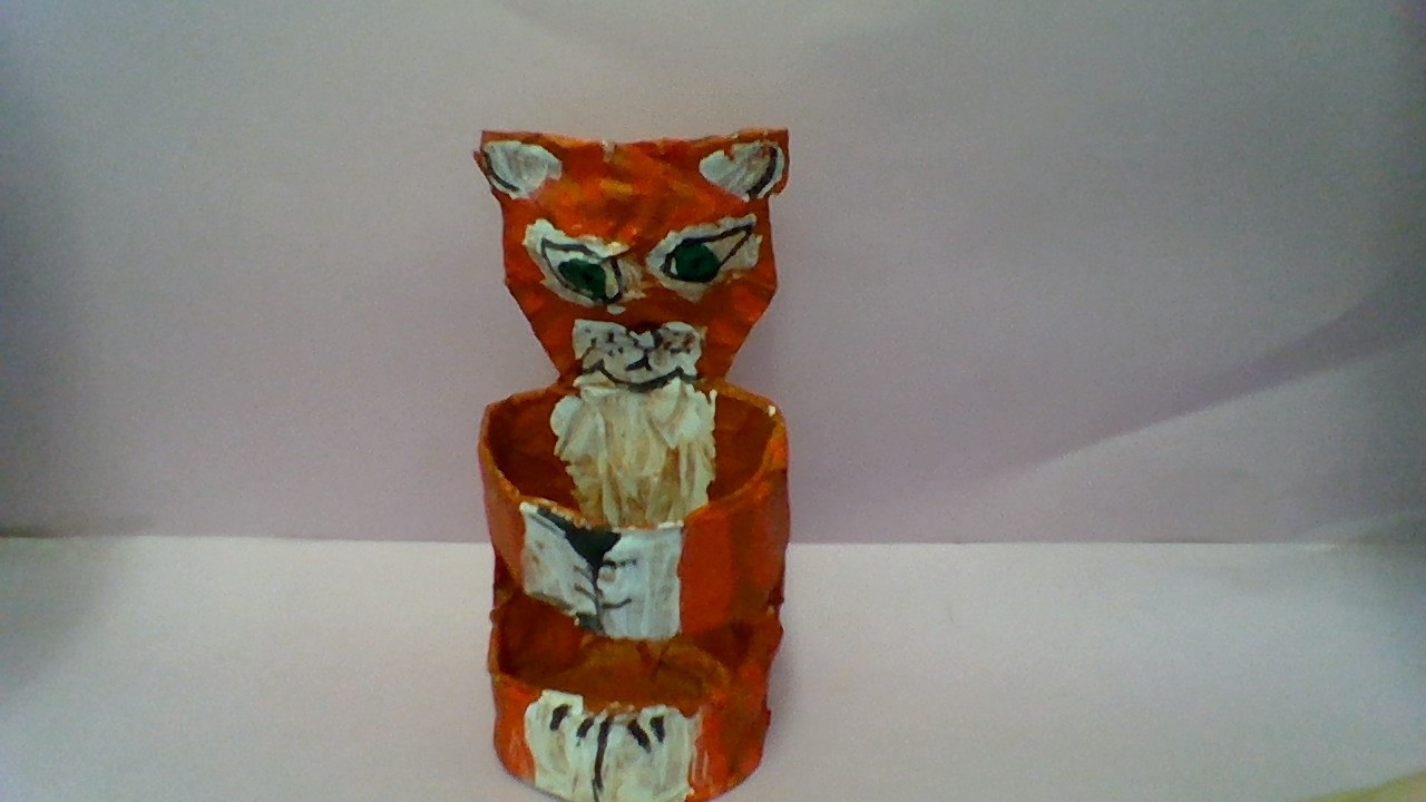5. Now you can paint your holder. Cover it with one colour, let it dry and then add other colours. Add white to highlight the eyes, paws and ears.