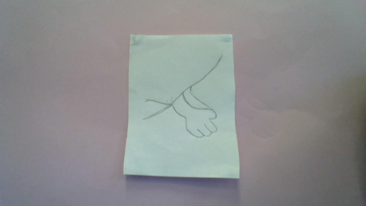 4. Add two curving lines for the dragon's arm. Then draw a thumb and three fingers. Draw another arm behind the first one.